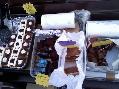 Here are some photos: People we just gathering together at this point. We waited around until a substantial amount of people appeared, the turnout was really good and we used a mega phone to announce the rules. The cakes were being sold and people were getting excited. The cakes were amazing and so we thank their backer, Katherine Cater, Bea Harbor, Sarah Wharton Catherine Crouch and none other than culinary treat making legends The Cake Collective